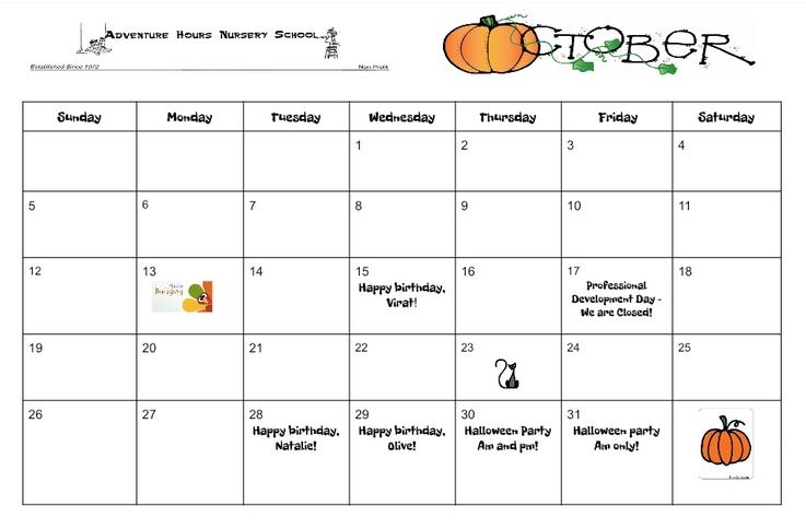 Adventure hours will be holding our annual Halloween parties on Thursday, October 30th (morning and afternoon) as well as Friday, October 31st (morning). *Please note: Children are welcome to wear costumes. Please pack alternative clothing either in backpacks or under costumes as we will go outside, weather permitting.